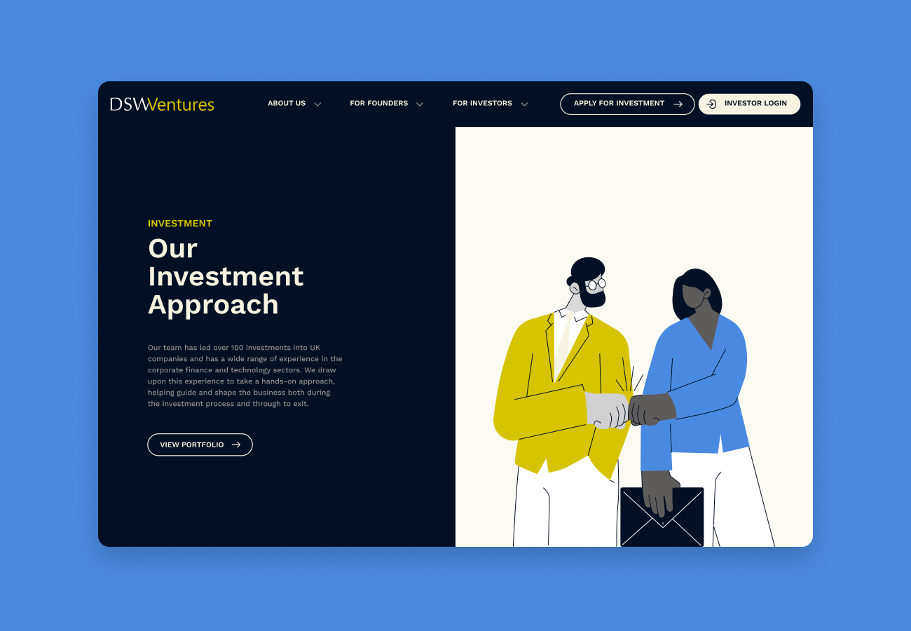 I was approached by DSW from a recommendation through a previous client. They had been working with a previous designer to help them update their website which wasn’t quite working for their brand. They were looking to refresh the images on their website without using photographs and they didn’t want to use generic illustrations that every other investment company used such as money, angel wings on investors and the classic charts and graphs.